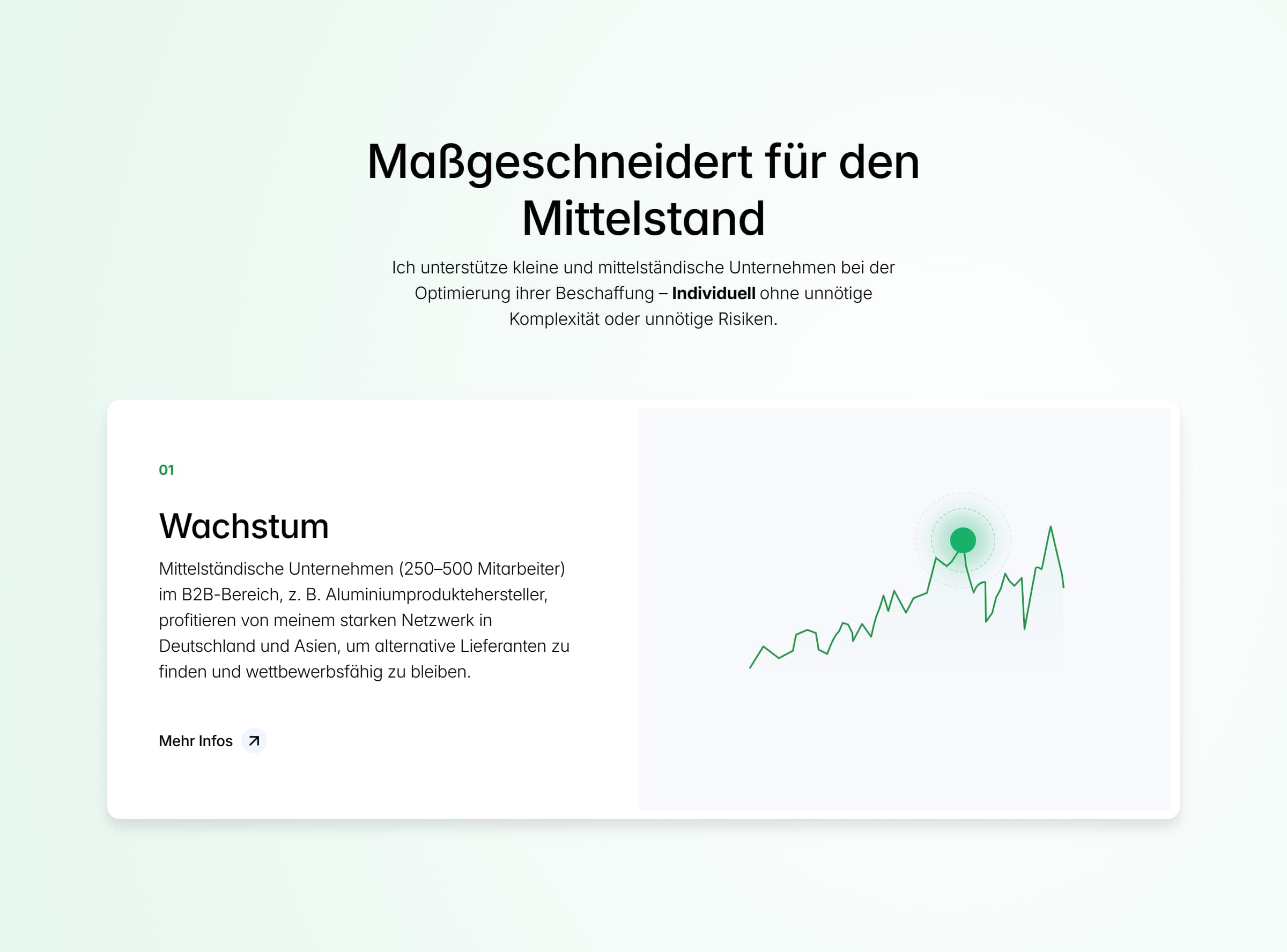 Jede Sektion und jeder Textbaustein hat bei uns einen klaren Zweck: Die Conversion-Rate Ihrer Website zu steigern. Sie misst, wie viele Besucher nicht nur schauen, sondern aktiv Kontakt aufnehmen. Dafür nutzen wir ein praxiserprobtes System – maßgeschneidert auf Ihr Unternehmen.