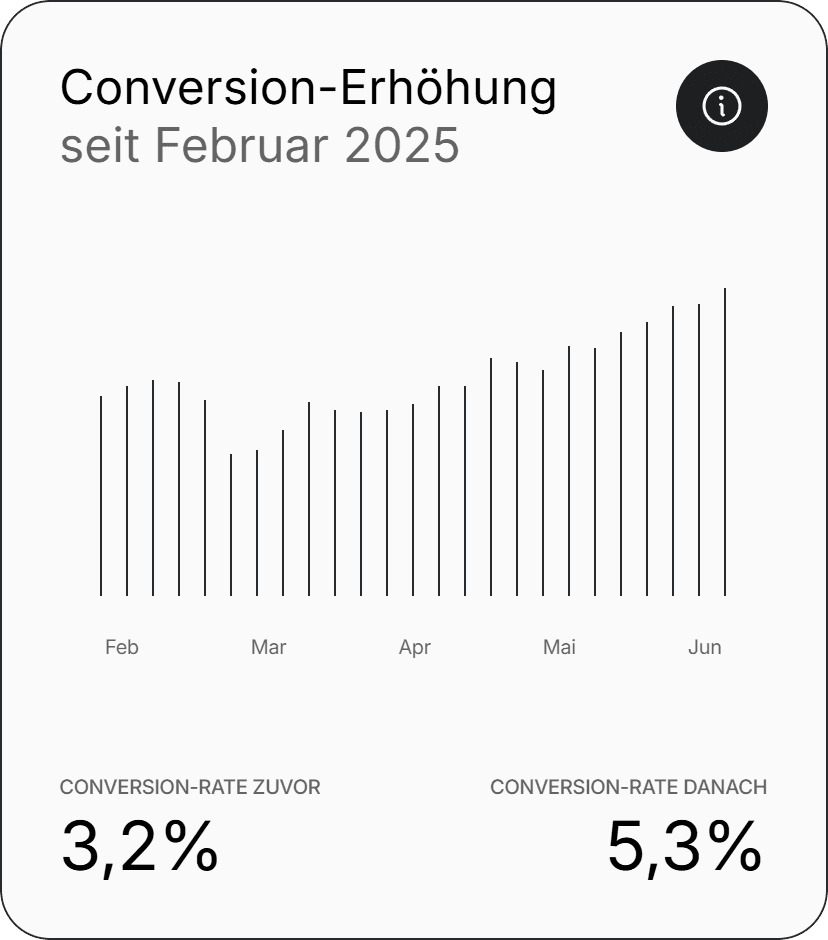 Eine gute Website - professionell gestaltet und konsequent conversion-optimiert - ist kein Nice-to-have, sondern ein entscheidender Umsatztreiber für dein Unternehmen. Sie baut Vertrauen auf (Studien zeigen: 75 % der Nutzer beurteilen die Glaubwürdigkeit eines Unternehmens allein am Design), hält Besucher länger auf der Seite und wandelt sie effizienter in Leads um. Strukturelle Optimierungen können deine Conversion-Rate um 20-400 % steigern, je nach Ausgangslage und Maßnahmen.